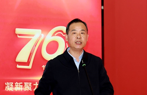 北人智能装备科技有限公司党委书记、董事长、总经理李彦锋致辞。他表示,北人智能一直致力于推动印刷设备的技术革新,此次与北京新华合作共建研发演示基地,是双方优势互补、资源共享的重要举措。通过整合双方在技术研发、生产实践等方面的优势,将共同攻克印刷技术难题,推动设备向智能化、高性能化升级,为印刷行业的高质量发展贡献力量。